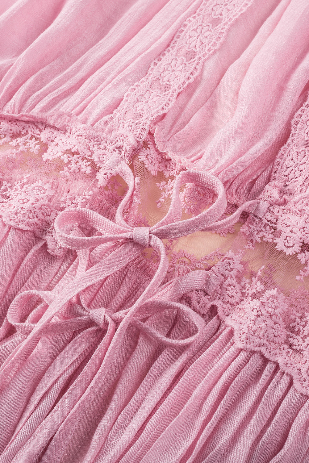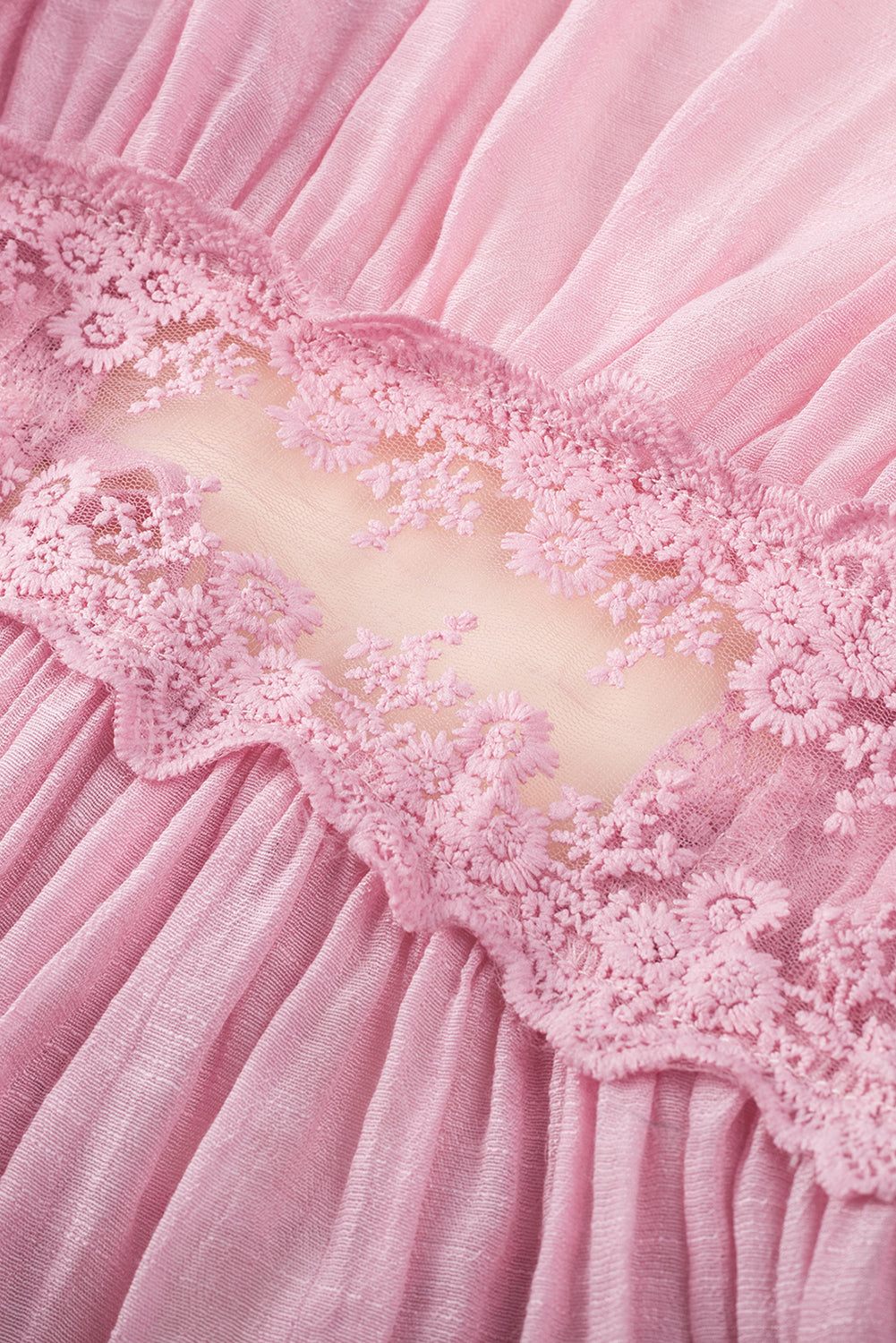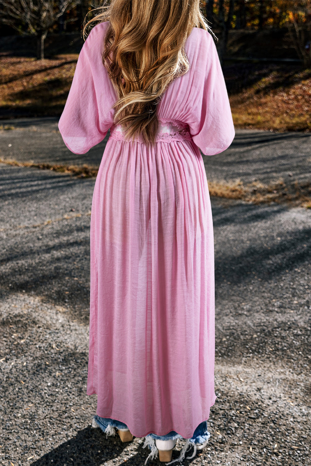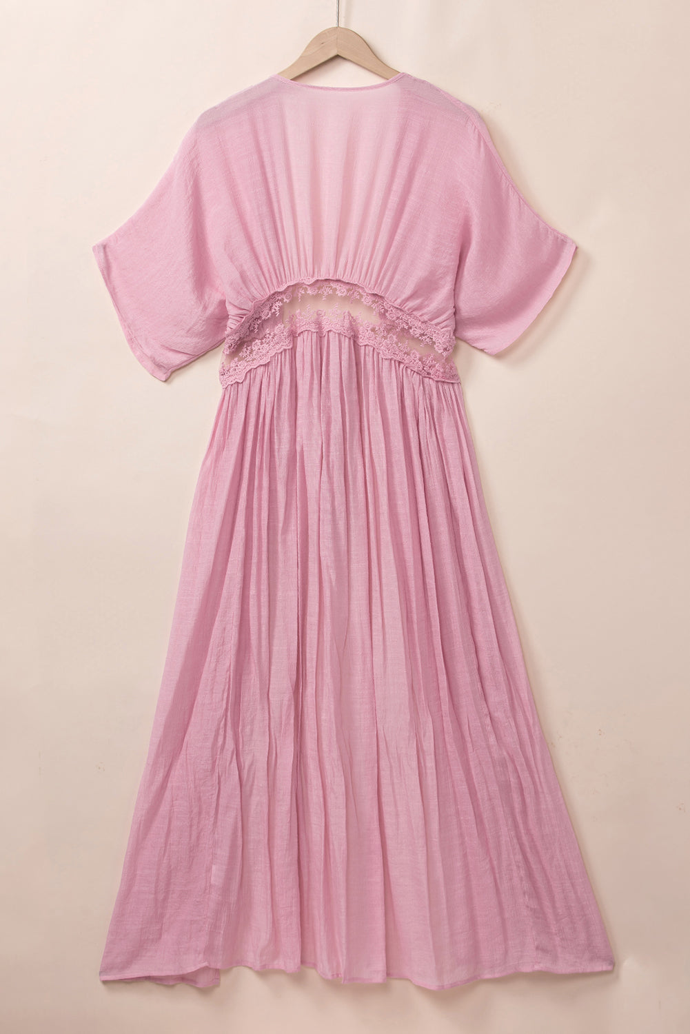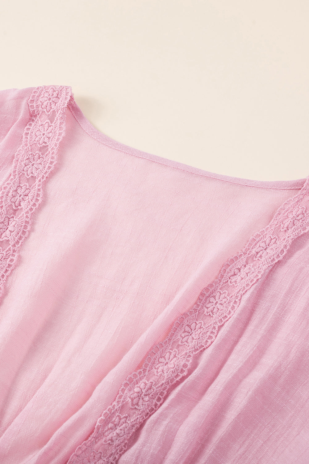 The lace splicing detail adds a delicate and feminine touch to the kimono
