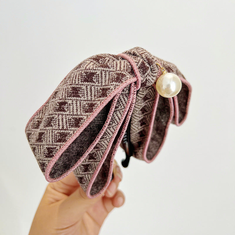 Product Name: Korean Japanese plaid bow banana clip pearl ponytail clip hairpin headdress R560